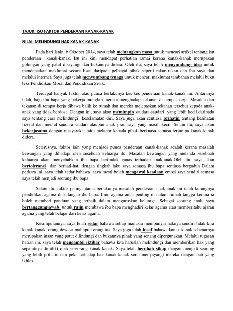 Moral Folio Langkah-langkah Mengatasi Penderaan Kanak-kanak PDF Free Download Saya akan rangkaikan satu demi satu. Ibu bapa mesti bertanggungjawabmembesarkan kanak-kanak memberi pendidikan yang sempurna kepada kanak-kanak dan. Menulis karangan berdasarkan isu berkaitan nilai moral laporan kerja amal Menghasilkan 8 tugasan harian Guna kertas A4 dan panjang lebih kurang 250 patah perkataan.