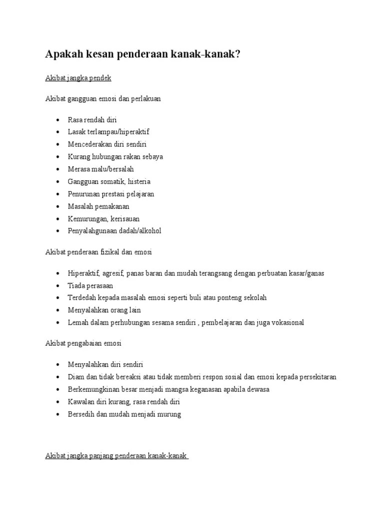 Penderaan fizikal pdf. Penderaan fizikal di kalangan kanak-kanak pada satu kajian kes kawalan di Hospital Kuala Lumpur. Penderaan Fizikal Di Kalangan Kanak-kanak Pada. Penderaan seksual terhadap kanak-kanak merupakan satu bentuk keganasan yang boleh mengancam keselamatan dan hak asasi seorang kanak-kanak.